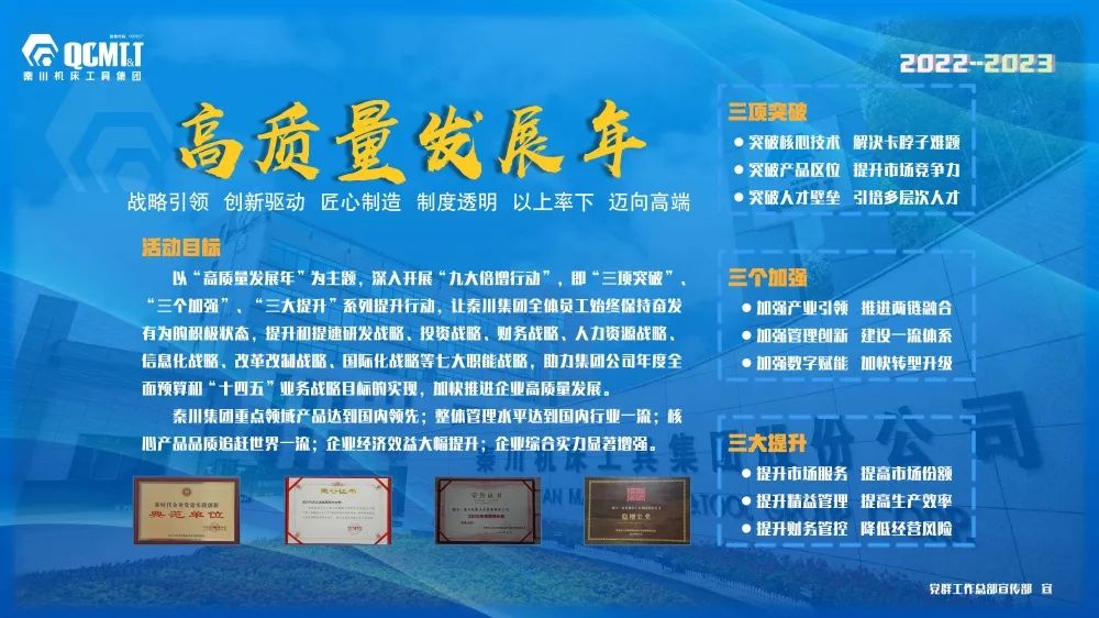 確定2022-2023年為集團(tuán)“高質(zhì)量發(fā)展年”,發(fā)布了《“高質(zhì)量發(fā)展年”(2022—2023年)實施方案》,明確了“高質(zhì)量發(fā)展年”活動實施內(nèi)容及考核辦法。