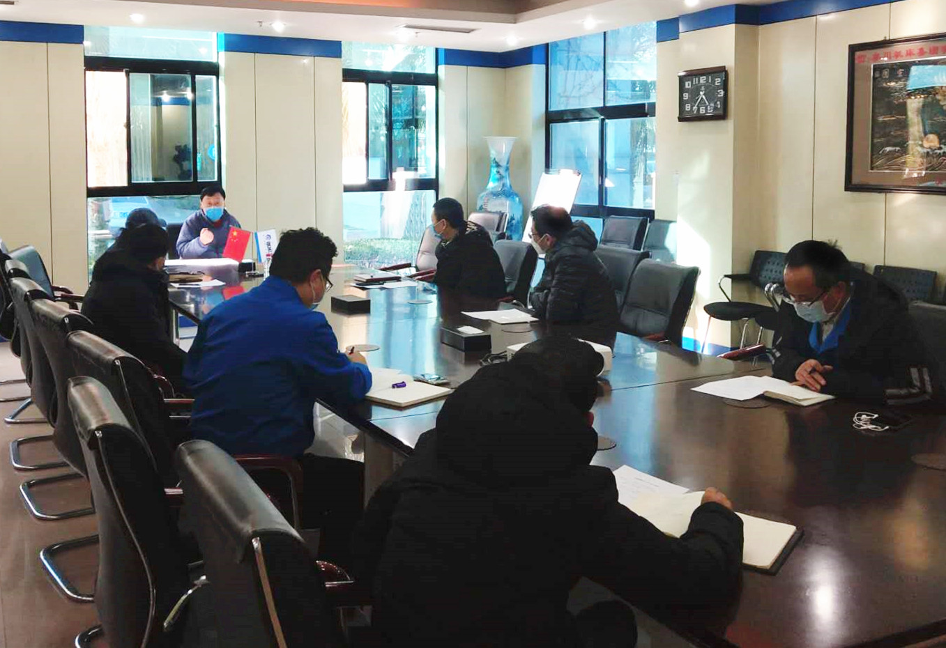 2月18日,接到用戶設備安裝調試、現場服務的請求,機床廠權少華、王冀棟、陳永剛、程永剛、沈偉軍、李堯、田鋒、呂曉亮等,立即買好了前往的機票、高鐵票。來不及安放好家中老小,只帶上口罩、消毒液,陸續受命出征.....