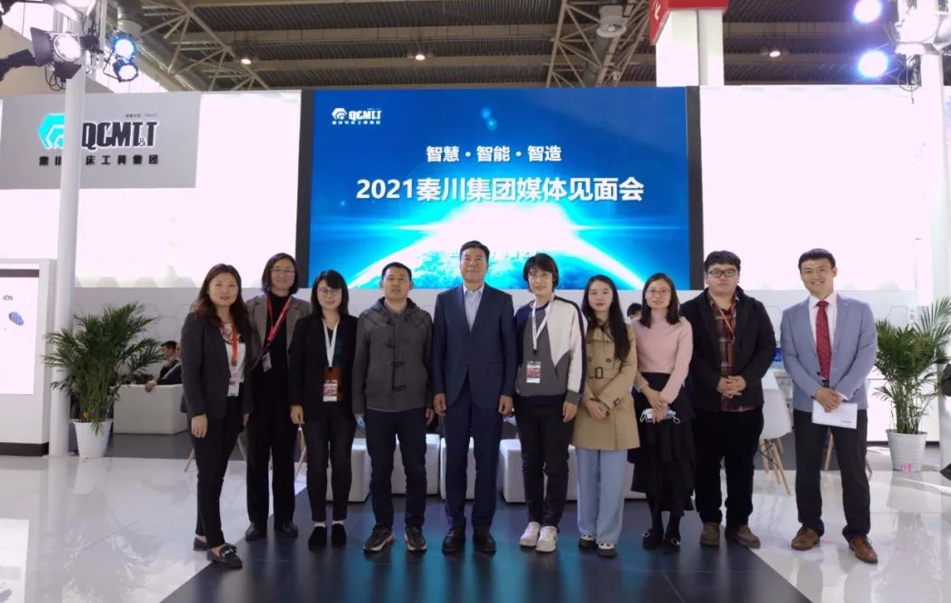 秦川集團新一代智能機床吸引了展會眾多客商的目光,成為展會的閃光點。嚴鑒鉑董事長接受了多家國內知名行業媒體及網絡融媒體平臺的集中采訪,詳細解答了媒體記者的問題。