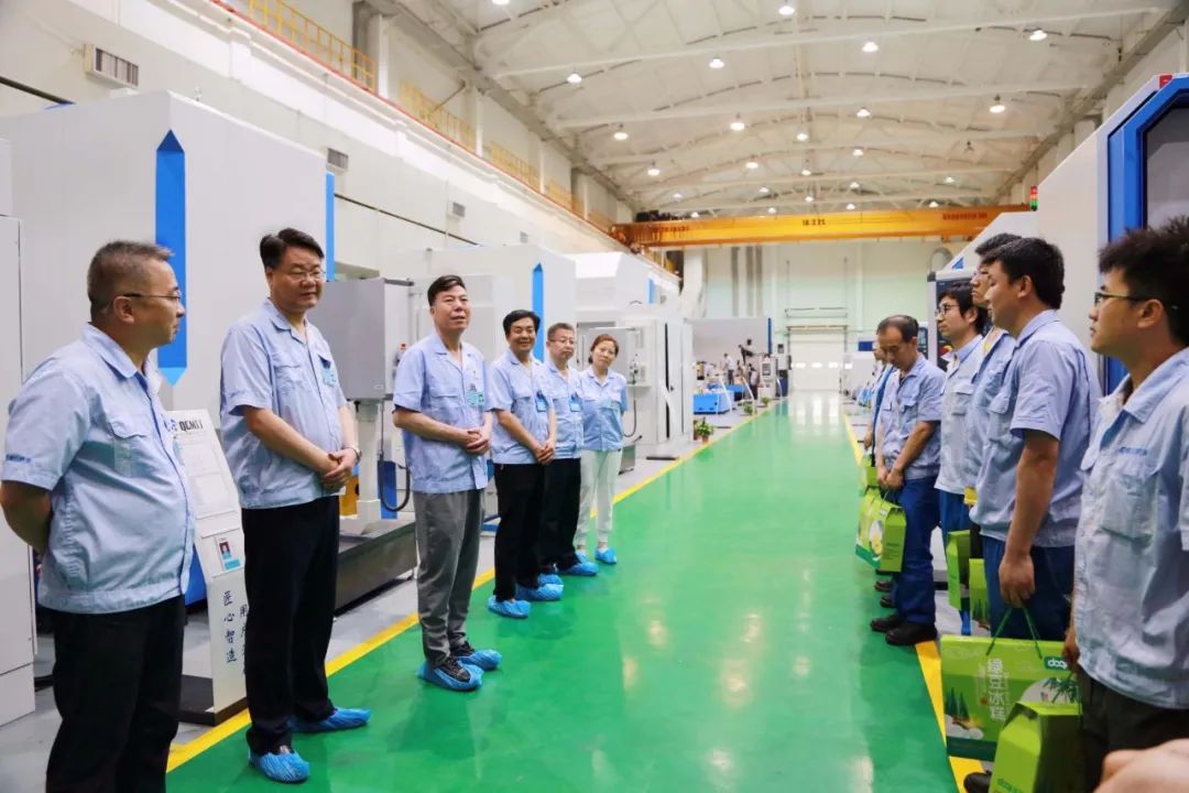 嚴(yán)鑒鉑董事長走進(jìn)總裝一車間、總裝二車間、機(jī)械加工車間,詳細(xì)了解節(jié)日期間生產(chǎn)組織、員工工作生活等情況,并向高溫下灑汗水、促生產(chǎn)、保交付,為高質(zhì)高效完成企業(yè)經(jīng)營目標(biāo)任務(wù)的廣大一線員工表示親切慰問。
